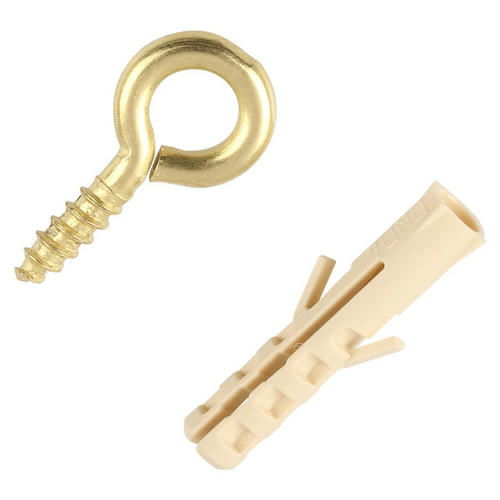 Шуруп, оснащенный кольцом, предназначен для крепления как в мягкие материалы (дерево, пластик и прочие), так и в твердые (бетон, кирпич, другие), но с использованием пластмассового дюбеля соответствующих размеров.