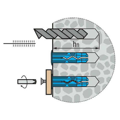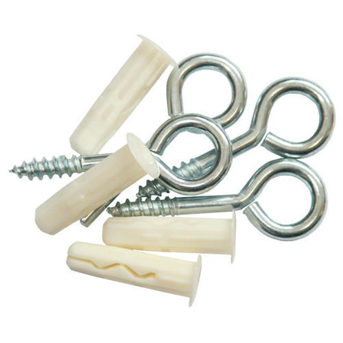 Шуруп, оснащенный кольцом, предназначен для крепления как в мягкие материалы (дерево, пластик и прочие), так и в твердые (бетон, кирпич, другие), но с использованием пластмассового дюбеля соответствующих размеров.