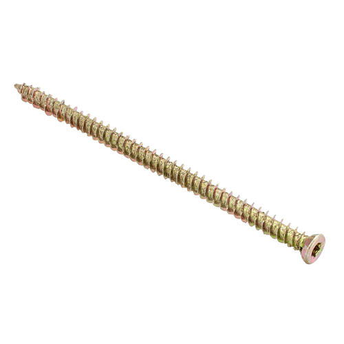Шурупы по бетону применяются для крепления конструкций и материалов в бетон, кирпич и в основания из легких бетонов. Шурупы имеют переменную резьбу и насечки по всей длине. Их используют в основном для крепления пластиковых и деревянных окон, дверных коробок к бетону, или другому твердому основанию.