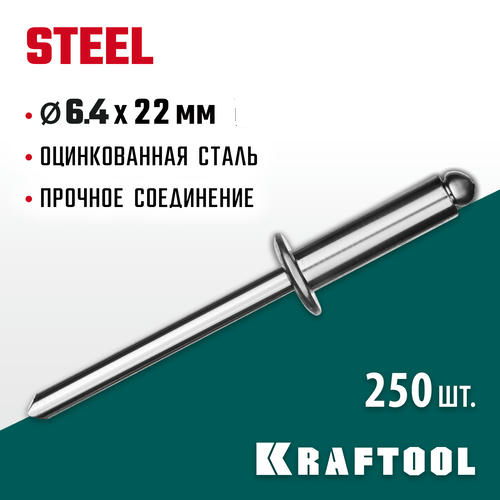 KRAFTOOL 6.4 х 22 мм, 250 шт., стальные заклепки Steel