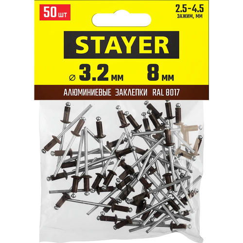 STAYER 3.2 х 8 мм, RAL 8017 шоколадно-коричневый, 50 шт., алюминиевые заклепки Color-FIX