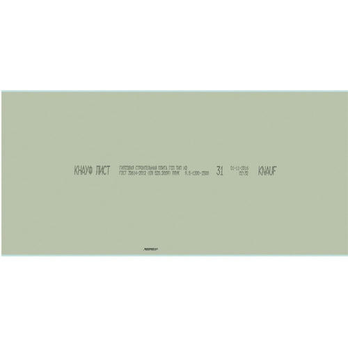 Гипсокартон ГКЛВ Knauf ГСП-Н3 ПЛУК влагостойкий 2500х1200х9,5 мм