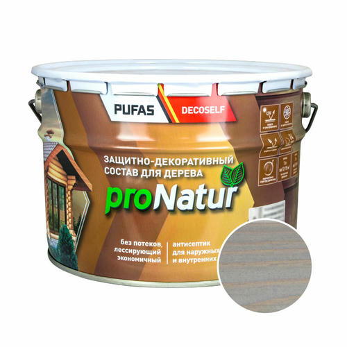 Антисептик лессирующий для дерева Pufas ProNatur серый туман (9 л)