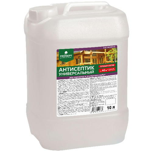 Антисептик универсальный для наружных и внутренних работ Prosept Eco Universal – антисептическая пропитка глубокого проникновения на водной основе. Предназначается для усиленной защиты древесины от гниения, плесени, синевы и насекомых-древоточцев. Используется как самостоятельное покрытие или в качестве грунтовочного слоя перед покрытием лессирующим антисептиком. Улучшает адгезию. Обеспечивает защиту от гниения даже в случае износа и разрушения лакокрасочного покрытия.