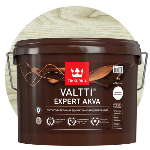 Антисептик Tikkurila Valtti Expert Akva – высокоэффективная декоративно-защитная лазурь. усовершенствованная формула позволяет сохранить природные свойства деревянных поверхностей на срок до 9 лет. Кроме того, лазурь элегантно подчеркивает структуру дерева и придает поверхности декоративный эффект. Valtti Expert Akva – изысканная защита для деревянного фасада! Просто нанесите его на деревянную поверхность и позвольте ему сделать свою работу. Усиленная воском формула помогает противостоять влаге, а УФ-фильтр защищает поверхность от воздействия солнечных лучей. Специальные компоненты, содержащиеся в его составе, надежно противостоят самым распространенным биологическим явлениям, встречающимся в различных климатических зонах, таким как, синева, плесень и гниль.