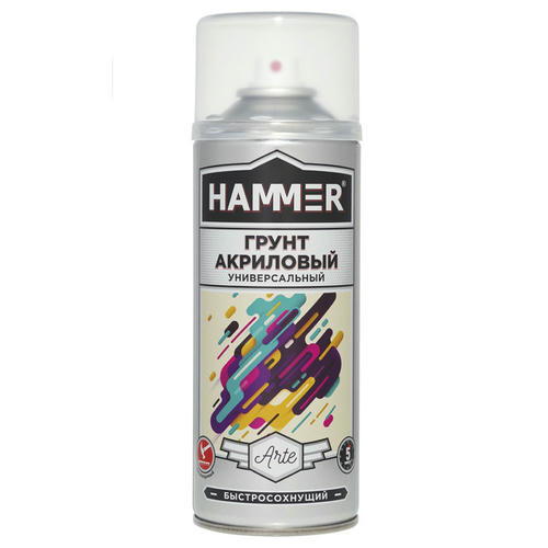 Высококачественный быстросохнущий универсальный акриловый грунт HAMMER Arte предназначен для улучшения сцепления основного покрытия с окрашиваемой поверхностью и обеспечения антикоррозионной защиты деталей из черных и цветных металлов. Отлично подходит для подготовки к окраске дерева, гипса и пластика всеми видами лакокрасочных материалов. Допускается грунтование старых лакокрасочных покрытий. Грунтовка обладает высокой тиксотропностью и скоростью высыхания, что обуславливает максимальное удобство применения. Легко наносится на труднодоступные места, имеет хорошую укрывистость и возможность шлифования. Подлежит окрашиванию любыми видами эмалей.