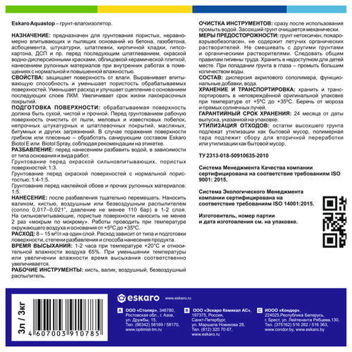 Грунт влагоизолятор Eskaro Aquastop 3л концентрат 1:5