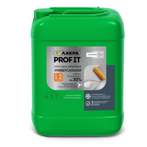 Грунт универсальный Лакра Prof It – высококачественная грунтовка на основе водной акриловой дисперсии. Он глубоко проникает в основание, укрепляя пористые и непрочные поверхности перед дальнейшей обработкой. Грунт имеет повышенную проникающую (до 6 мм) и укрепляющую способность. Содержит фунгицидные добавки, препятствующие образованию плесени.
