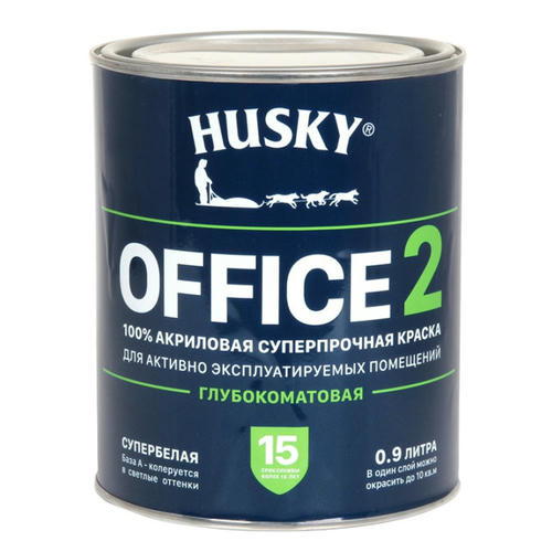 Краска акриловая для стен и потолков HUSKY OFFICE 2 суперпрочная база А 0,9л