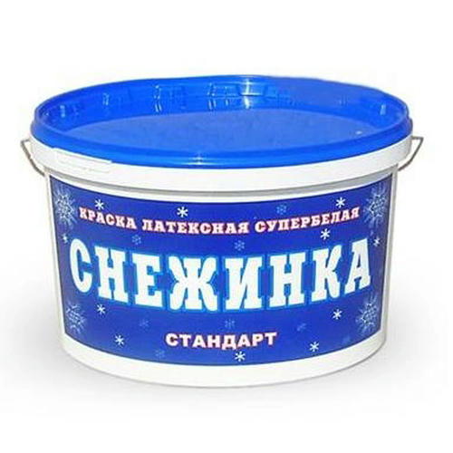 Краска ВД СНЕЖИНКА 14 кг латексная стандарт супербелая для стен и потолков БС-10 – пылеотталкивающая, экономичная в расходе, стойкая к мытью и моющим средствам, пожаровзрывобезопасная, газопроницаемая, без запаха.