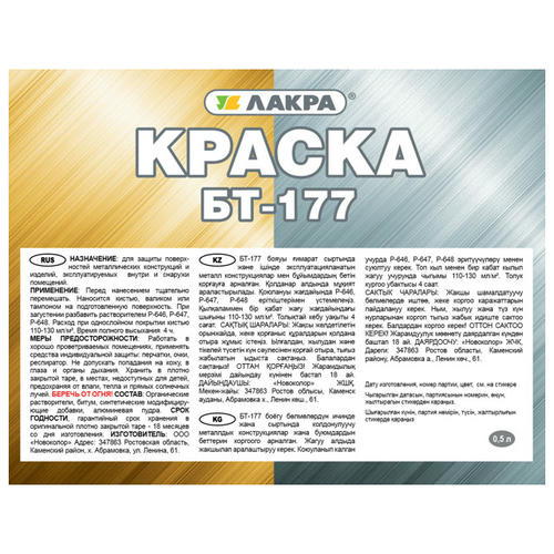 Краска БТ-177 применяется для защиты поверхностей металлических конструкций и изделий, эксплуатируемых внутри и снаружи помещений.