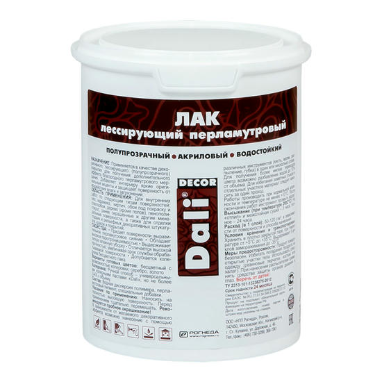 Лак лессирующий перламутровый Dali Decor для защитно-декоративной финишной отделки разных видов поверхностей.
