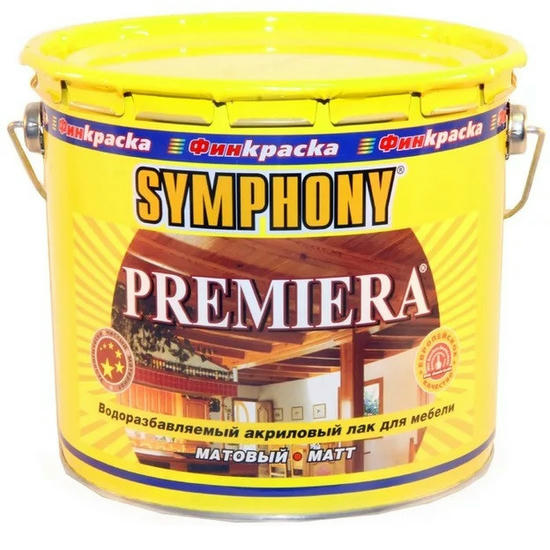 Лак мебельный Symphony Premiera матовый база EP 1/0,9 л – экологически чистый водоразбавляемый акриловый лак «Premiera» с усиленной защитой против ультрафиолета, с высокой химической стойкостью и износостойкостью.