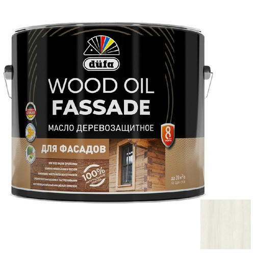 Масло деревозащитное для фасадов Dufa Wood Oil Fassade белое 2 л высокоэффективное деревозащитное средство для обработки фасадов любых пород древесины. Подходит для деревянных строений из бруса, бревна, доски, для покрытия обшивок из вагонки, блокхауса, планкена, а также окон, дверей и других конструкций из древесины, фанеры, ДСП, ДВП, ОСП.