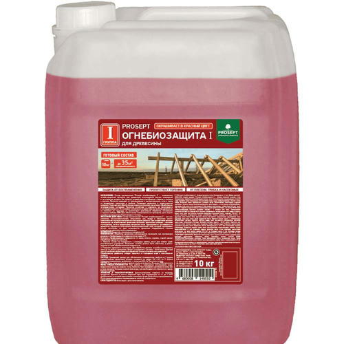 Prosept огнебиозащита – состав пропиточный “Prosept огнебиозащита I” – комплексная огнебиозащитная пропитка для древесины, используется внутри помещений и на открытом воздухе без прямого воздействия атмосферных осадков и контакта с грунтом. Пропитка защищает от возникновения и распространения огня, а также от воздействия насекомых и грибков. Переводит древесину в трудногорючий материал. Подходит для обработки как новых конструкций, так и ранее обработанных огнезащитными составами. Пропитка устойчива к старению, не высаливается и не выщелачивается. Не оказывает негативного воздействия на свойства древесины, не изменяет ее структуру, не препятствует дальнейшей обработке, склеиванию и окраске любыми ЛКМ. При обеспечении невымываемости препарата, срок защиты составит не менее 7 лет. Подтверждено тестами.