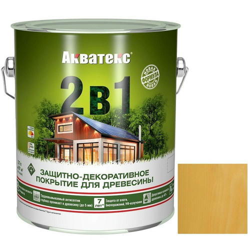 Покрытие алкидное защитно-декоративное для древесины Акватекс 2 в 1 полуматовое Сосна 2,7 л