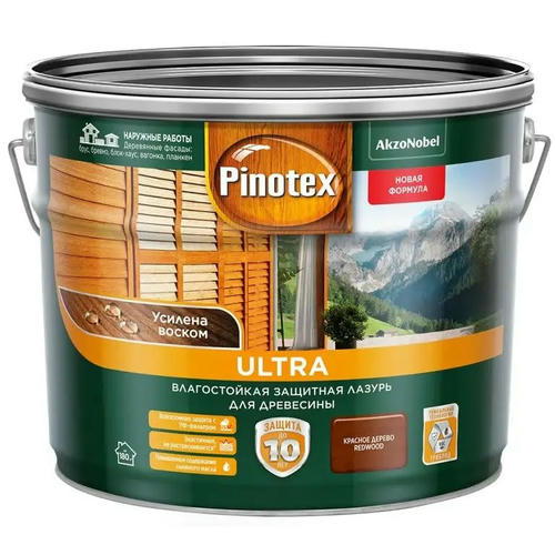 Пропитка для древесины Pinotex Ultra AWB Красное дерево – влагостойкая лазурь на масляной основе для комплексной защиты древесины от атмосферных явлений до 10 лет.
