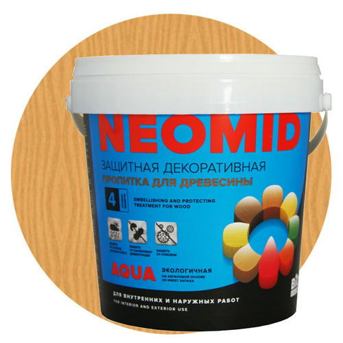 Пропитка для древесины Neomid Bio Color Aqua Золотая сосна – деревозащитный декоративный состав на акриловой основе для высокоэффективной защиты и декоративной отделки деревянных поверхностей. Образует на поверхности древесины «дышащую» шелковисто-матовую защитную пленку с высокими декоративными и защитными свойствами.