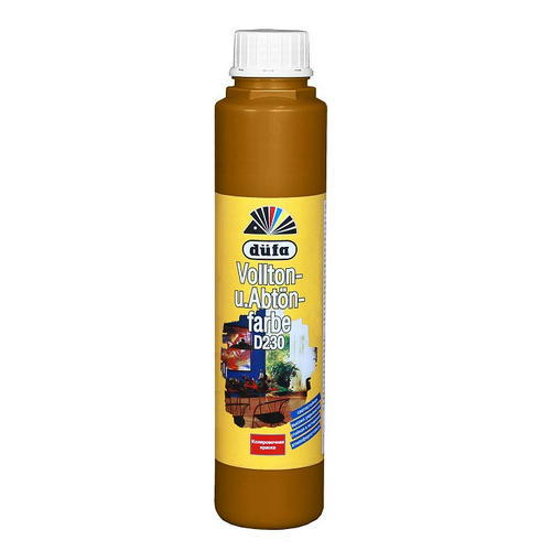 Тонер Dufa D 230 №110 Охра – высококачественный дисперсионный колер, изготовленный на базе синтетических смол. Предназначен для декоративного оформления фасадных и внутренних поверхностей. Краситель применяют для колеровки всех стандартных водных дисперсионных, эмульсионных, латексных красок для стен и потолков, а также синтетических штукатурок и пластиков. Возможно использование в виде концентрата для надписей и малярных работ.
