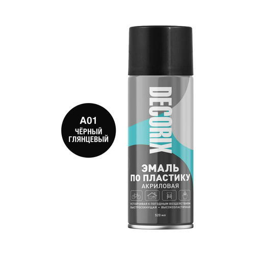 Эмаль аэрозольная по пластику чёрный матовый 520 мл/DECORIX