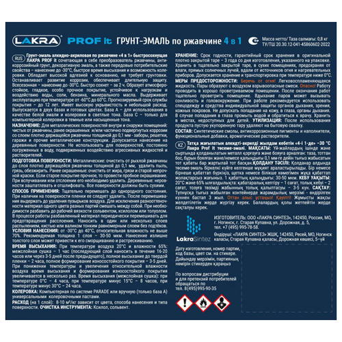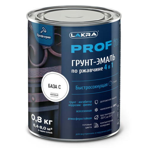 Атмосферостойкая гладкая грунт-эмаль 4 в 1 сочетает свойства преобразователя ржавчины, антикоррозионного грунта, декоративной эмали, а также обладает передовыми потребительскими свойствами. Грунт-эмаль обладает высокой адгезией к основанию, не требует применения грунтовки по металлу. Останавливает развитие коррозии, обеспечивает долговременную защиту. Возможно применение при отрицательных температурах до -30°С. Быстро сохнет. Подходит только для компьютерной колеровки в темные или насыщенные тона.