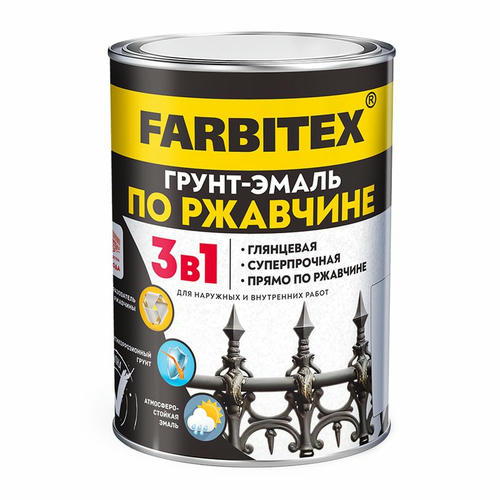 Грунт-эмаль по ржавчине 3 в 1 Farbitex используется для окрашивания деревянных и металлических поверхностей внутри и снаружи помещений. Сочетает функции грунта, антикоррозионного преобразователя и декоративной эмали. Обеспечивает надежную защиту от ржавчины и придает поверхности красивый внешний вид.
