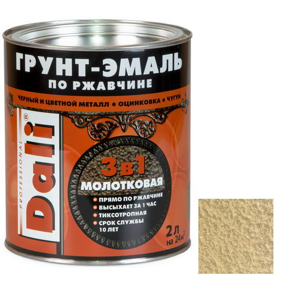 Грунт-эмаль по ржавчине Dali 3 в 1 молотковая золотистая 2 л