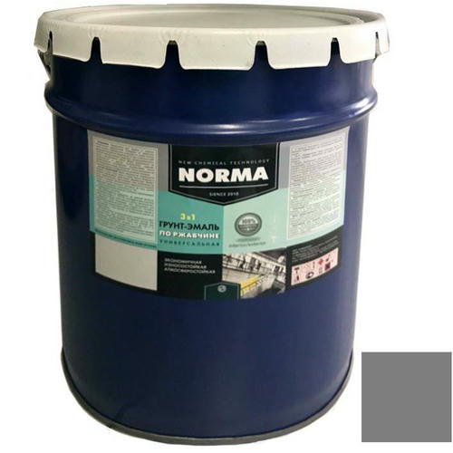 Грунт-эмаль 3 в 1 Novocolor серая матовая 20 кг- сочетает в себе свойства преобразователя ржавчины, антикоррозионного грунта и декоративной эмали, что позволяет упростить процесс окрашивания. Имеет в своем составе антикоррозийные пигменты и преобразует ржавчину. Первый слой является грунтом матового цвета, второй слой дает полуматовый эффект. Применяется для окраски решеток, оград, гаражей, металлических конструкций, эксплуатирующихся в атмосферных условиях, окраска ржавых поверхностей автомобилей, таких как днище и т. п. Расход: 80-120 мл/м2 в один слой. Время высыхания: 30 минут.