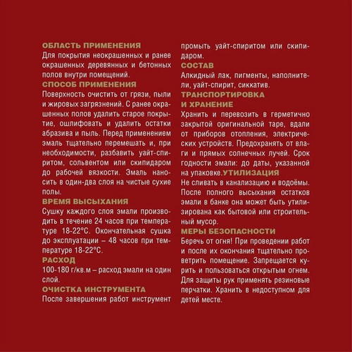 Алкидная эмаль ПФ — 266 М предназначена для покрытия неокрашенных и ранее окрашенных деревянных и бетонных полов внутри помещений.