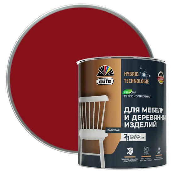 Эмаль для мебели и деревянных изделий Dufa акриловая матовая винно-красная 2 л