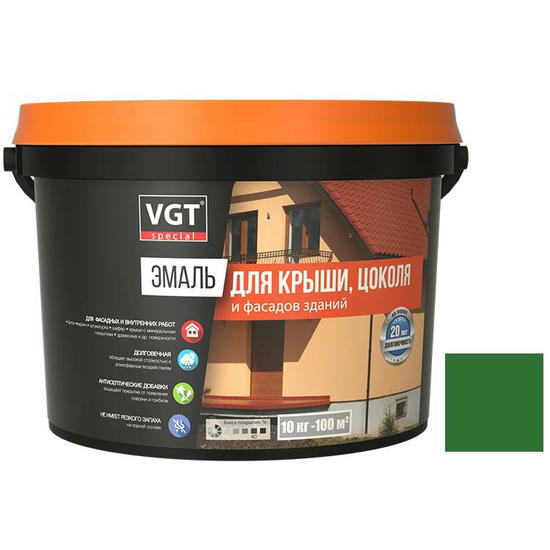 Эмаль для крыши цоколя и фасадов зданий VGT ВД-АК-1179 полуглянцевая зеленая 2,5 кг