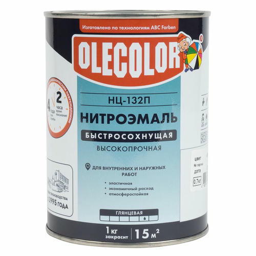Эмаль НЦ-132П Olecolor – это высококачественное покрытие для окрашивания различных поверхностей. Обладает отличной адгезией и устойчивостью к воздействию внешних факторов, таких как ультрафиолетовое излучение, атмосферные осадки и механическое воздействие.