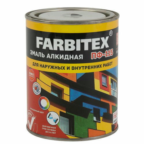 Эмаль ПФ-115 FARBITEX – покрытие для защиты материалов в строительстве и отделке. Применяется на различных поверхностях, таких как металл, дерево, бетон и камень. Подходит для внутренних и наружных работ. Отличительными особенностями эмали Фарбитекс являются долговечность, высокая адгезия, хороший уровень защиты поверхности от воды, солнечных лучей и атмосферных условий, легкость в обработке и широкий спектр цветов.
