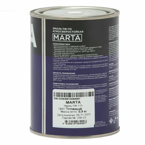 Эмаль ПФ-115 MARTA, зеленая 0,9 кг