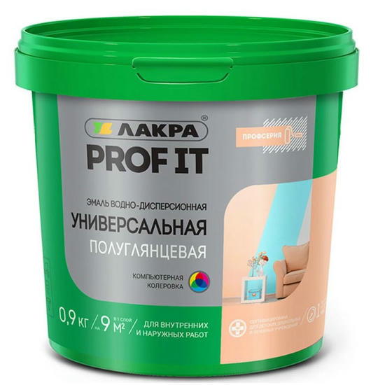 Эмаль универсальная Лакра Prof it ВД База А полуглянцевая 0,9 кг