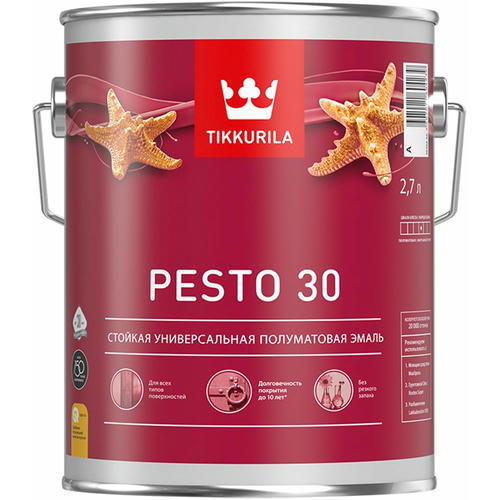 Эмаль универсальная стойкая Tikkurila PESTO 30 A полуматовая белая (2,7л)