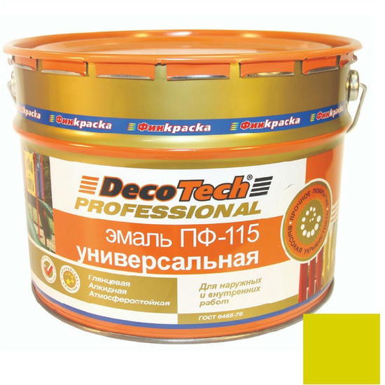 Эмаль универсальная DecoTech Professional ПФ-115 желтая под RAL1023 20 кг