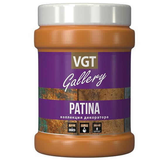 Эмаль универсальная VGT ВД-АК-1179 Patina Коллекция декоратора предназначена для декоративной отделки элементов стен, мебели, лепнины, кованых изделий и декоративных предметов интерьера. Создаёт на поверхности тонированное покрытие с декоративным эффектом, имитирующим старение металлов. Рекомендуется к использованию внутри и снаружи помещений.