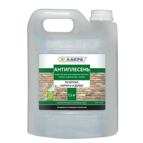 Антиплесень Лакра без хлора – высокоэффективное средство для уничтожения и профилактики возникновения плесени, грибка, синевы и большинства видов бактерий на бетонных, кирпичных, деревянных и любых других поверхностях, обладающих впитывающей способностью. Для влажных помещений и наружных работ на обработанные средством поверхности необходимо нанести сверху финишное покрытие различными видами ЛКМ, обеспечивающими защиту подложки от попадания воды.