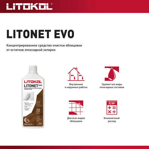 LITONET EVO – концентрированное средство очистки облицовки от остатков эпоксидной затирки.