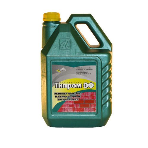 Очиститель фасадов Типром ОФ – это готовый к применению состав, представляющий собой смесь кислот с добавлением поверхностно-активных веществ. Средство применяется для очистки фасадов из кирпича, натурального и искусственного камня, штукатурки от солевых отложений (высолов) и стойких атмосферных загрязнений. Удаляет соли преимущественно карбонатного и сульфатного происхождения.