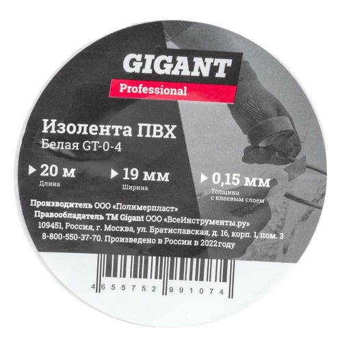 Изолента ПВХ Gigant Professional GT-0-4 белая 19 мм 20 м