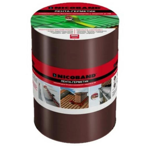 - Простота применения. Лента-герметик Nicoband в применении очень проста и не требует специальных навыков. Благодаря слою битумно-полимерного вяжущего специального состава великолепно выполняет функции герметизации на протяжении всего срока службы (10 лет).