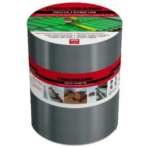- Простота применения. Лента-герметик Nicoband в применении очень проста и не требует специальных навыков. Благодаря слою битумно-полимерного вяжущего специального состава великолепно выполняет функции герметизации на протяжении всего срока службы (10 лет).