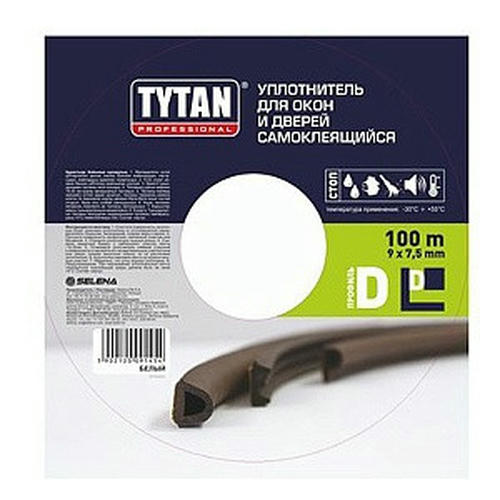 Уплотнитель TYTAN (D – профиль), белый, 100м x 9мм x 7.5мм