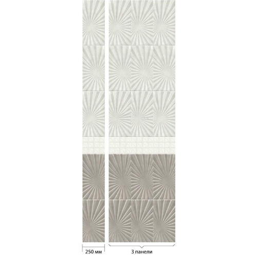 Панель стеновая ПВХ Оранда – быстрый способ оформления стен помещения. По краям панелей расположены замки для крепления, позволяющие соединять панели между собой и маскирующие шов в месте соединения. На панелях с узором как правило присутствует более яркий узор-картинка, а добор используют как продолжение фонового рисунка.