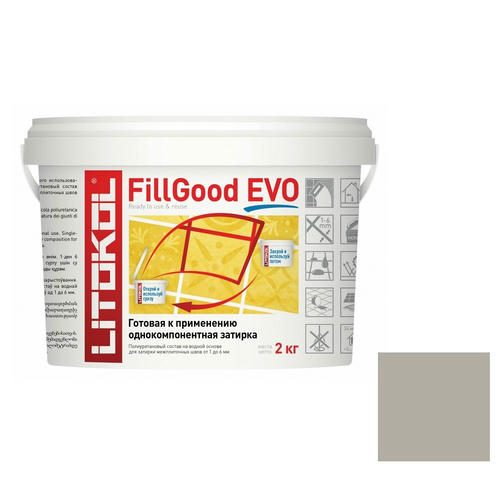 Затирка полиуретановая Litokol FillGood Evo F.210 Greige 2 кг готовыи_ к применению инновационныи_ однокомпонентныи_ полиуретановыи_ состав на воднои_ основе для затирки швов керамическои_ плитки, керамогранита и стекляннои_ мозаики ширинои_ от 1 до 6 мм с водоотталкивающим эффектом.