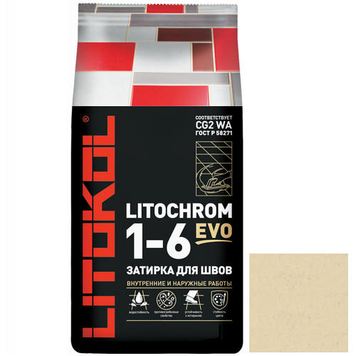 Затирка цементная для швов Litokol Litochrom 1-6 Evo – цементная затирка для заполнения межплиточных швов шириной от 1 до 6 мм с противогрибковыми свойствами. Подходит для внутренних и наружных работ.