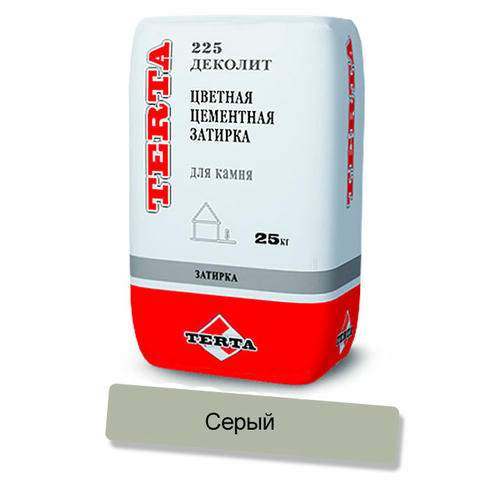 Затирка цементная Terta Деколит 2250 серый 25кг для затирки швов при облицовке фасадов из натурального или искусственного камня. Внимание! Содержит цемент. При работе со смесью использовать резиновые перчатки и защитные очки. Избегать длительного контакта растворной смеси с кожей и глазами. При попадании в глаза промыть большим количеством воды. Хранить в недоступном от детей месте.