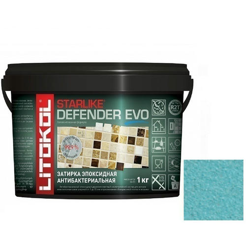 Затирка Litokol Starlike Defender Evo S.320 Azzurro Caraibi – антибактериальныи_ двухкомпонентныи_ эпоксидныи_ кислотостои_кии_, щелочестои_кии_ состав для затирки межплиточных швов с ширинои_ шва от 1 до 15 мм и использования в качестве клея для всех видов облицовочнои_ плитки и мозаики в помещениях с высокими гигиеническими и санитарными требованиями.